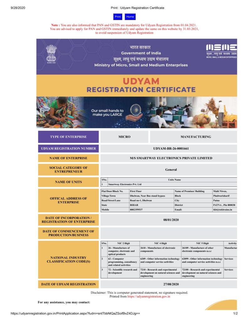 Patna Office: Malti Niwas, Road No-1, Dhelwan, Near Bus Stand Bypass Road, Patna-13, Pin: 800030, Email: Smartwayelectronics20@gmail.com, Mob: +91-6299818933